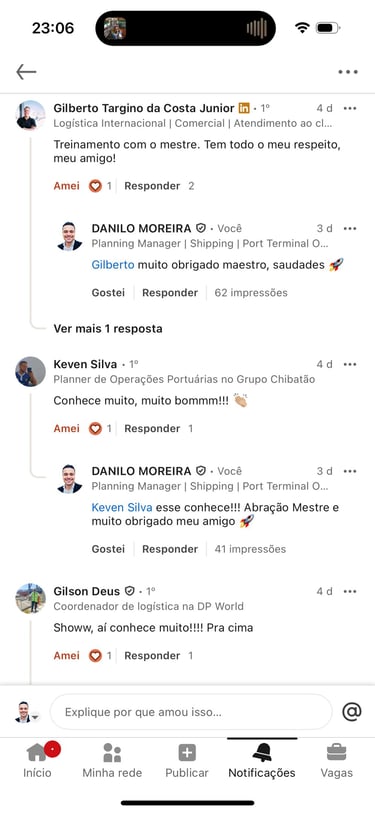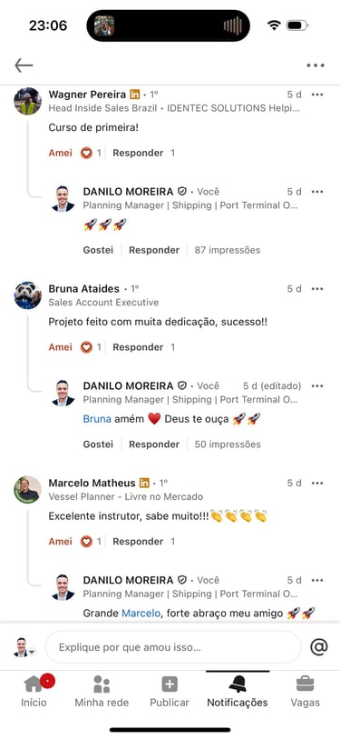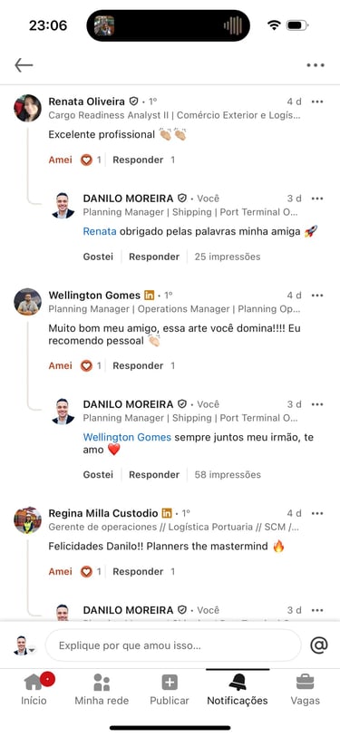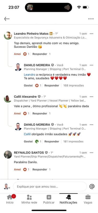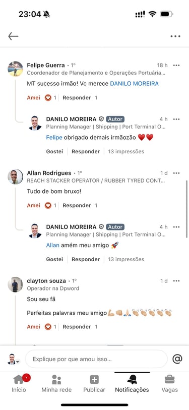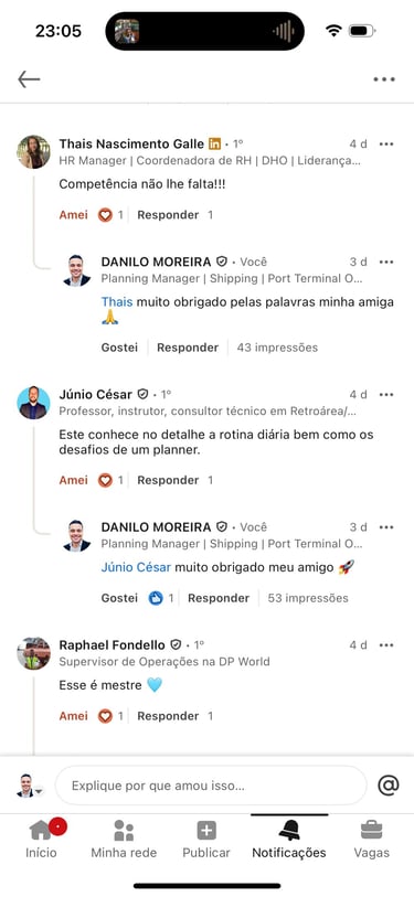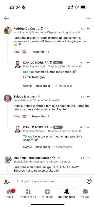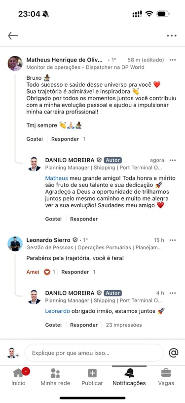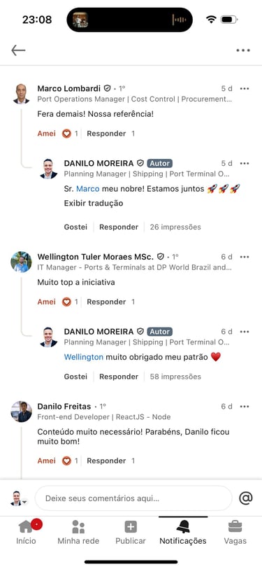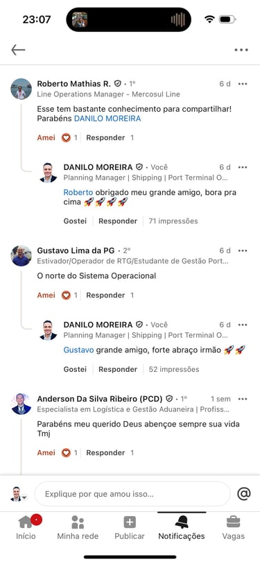 Hoje, depois de mais de 16 anos trabalhando no setor portuário, liderando grandes operações e treinando diversos profissionais que hoje ocupam cargos estratégicos, posso afirmar: